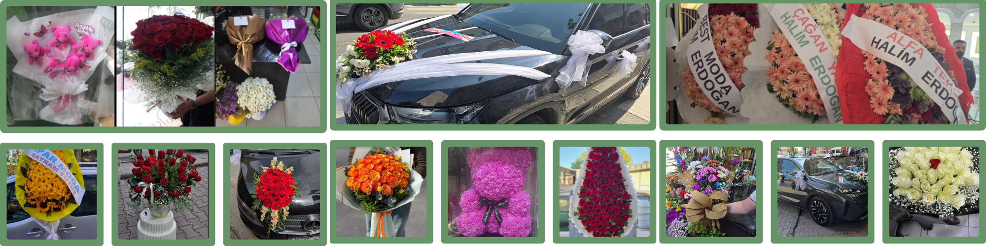 Özel siparişleriniz, gelin arabası süsleme randevuları ve toplu çiçek talepleriniz için bizimle iletişime geçebilirsiniz.